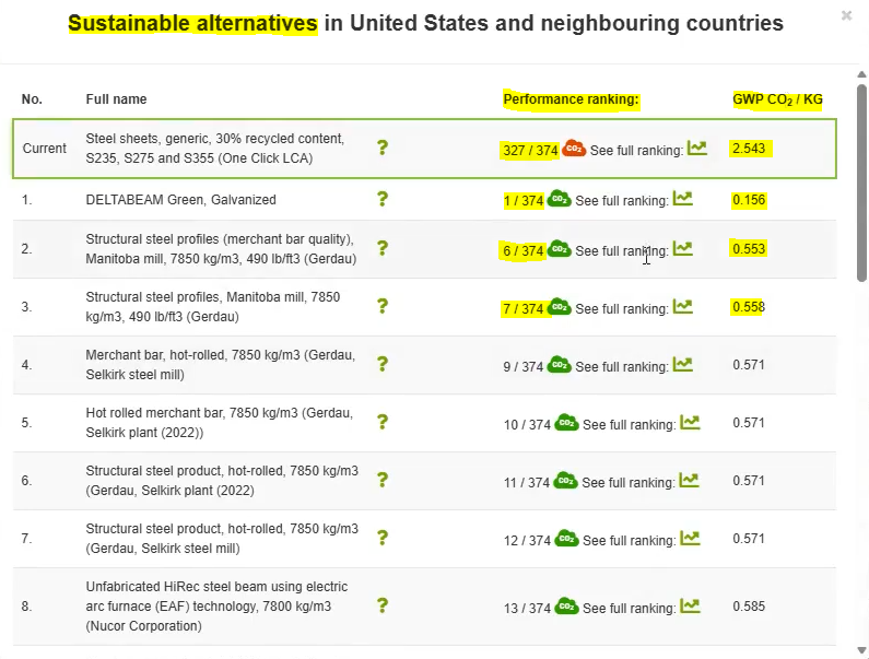 As the new prerequisite demands, the tool lets you spot the carbon hotspots in your design (up to 25 most carbon-intensive elements per project), and as well suggests more environmentally-preferable alternatives to address the same.